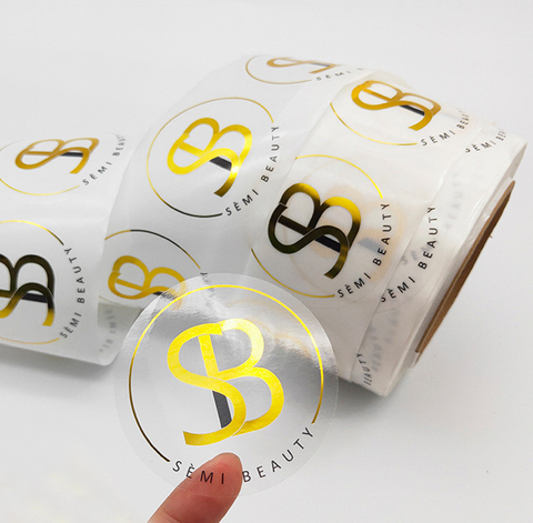 Không thấm nước mỹ phẩm bao bì Nhãn dán nhãn rõ ràng trong suốt lá vàng dập nóng nhãn CuộN
